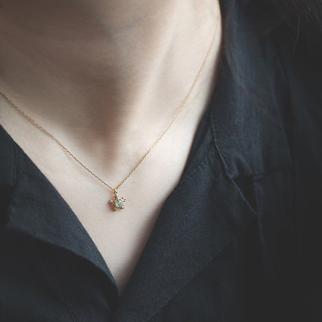 季節の最後の輝きをたたえている冬の静かな庭で、ひっそりと、それでいて力強く彩る植物たち。尊く美しい姿に芯の強さを秘めた「冬の庭」をイメージしたコレクションから、クリスマスローズをモチーフにしたネックレス。